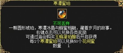 2025年12月11日0点——2026年1月17日24点,玩家可以右键点击花间蜜/寒潭蜜珀道具,打开活动兑换界面使用花间蜜/寒潭蜜珀核心兑换奖励物品。