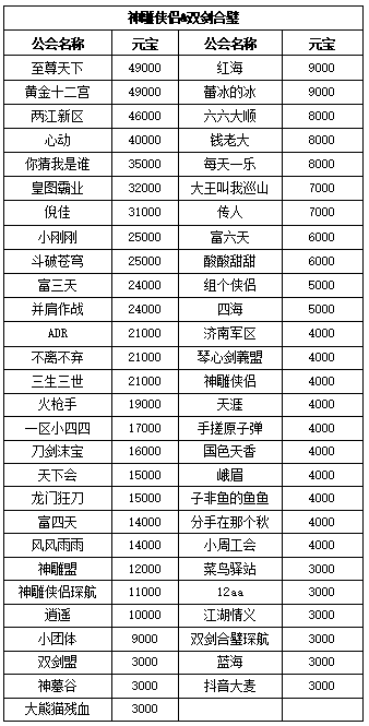 2、公会等级数量、消费积分一致者,根据比赛规则,以最先达到目标的时间为依据进行排序。