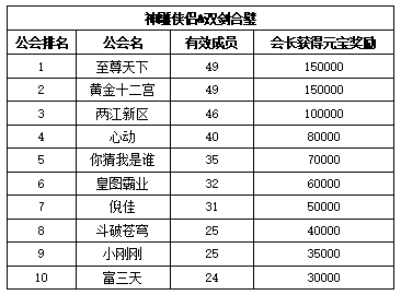 3、会长元宝奖励将直接发放至对应角色,会长角色根据所填资料进行核实。