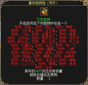 1、下架豪华宠物包(乙巳)、豪华坐骑包(乙巳)、豪华精魄包(乙巳),上架豪华宠物包(丙午)、豪华坐骑包(丙午)、豪华精魄包(丙午),售价8888元宝。