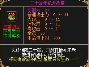 14、背包护符:二十周年徽章(永久),绑定,售价30000元宝