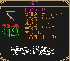 7、背包护符:锋刃(永久),绑定,售价30000元宝