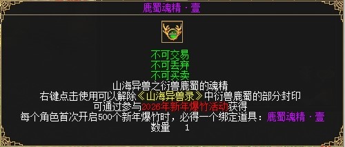 1、鹿蜀魂精•壹,绑定,售价5999元宝。