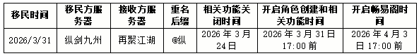 2026年3月31日以下服务器的玩家将参与移民,具体时间安排如下: